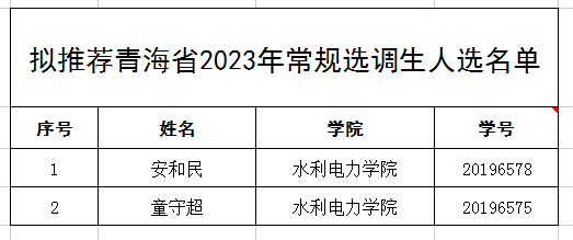 根据《青海省2023年常规选调生选调公告》要求,经自愿报名、公司初审把关、资格复审等环节,确定拟推荐2名同学报考青海省2023年常规选调生(名单附后),现予以公示。