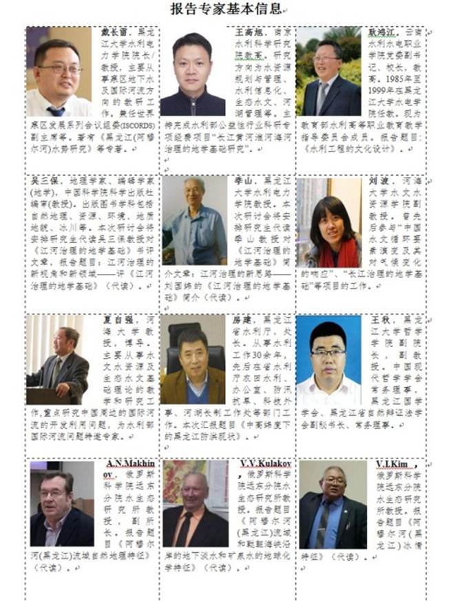 来自南京水利科学研究院、河海大学、黑龙江省水利厅、合肥工业大学、华东师范大学、黑龙江省水利水电勘测设计研究院、云南水利水电职业公司、大兴安岭水文水资源中心,以及乐天使fun88官方网站哲学公司、法公司、乐天使,还有俄罗斯东北联邦大学、俄科院远东分院水生态研究所等单位的专家学者将应组委会之邀进行在线交流研讨。