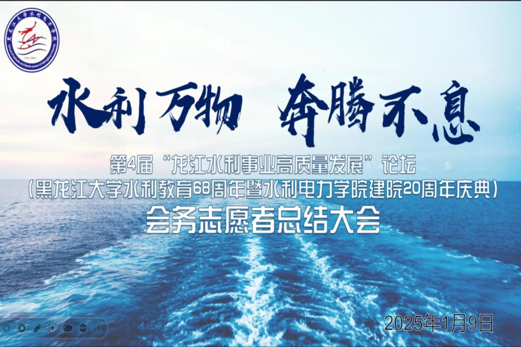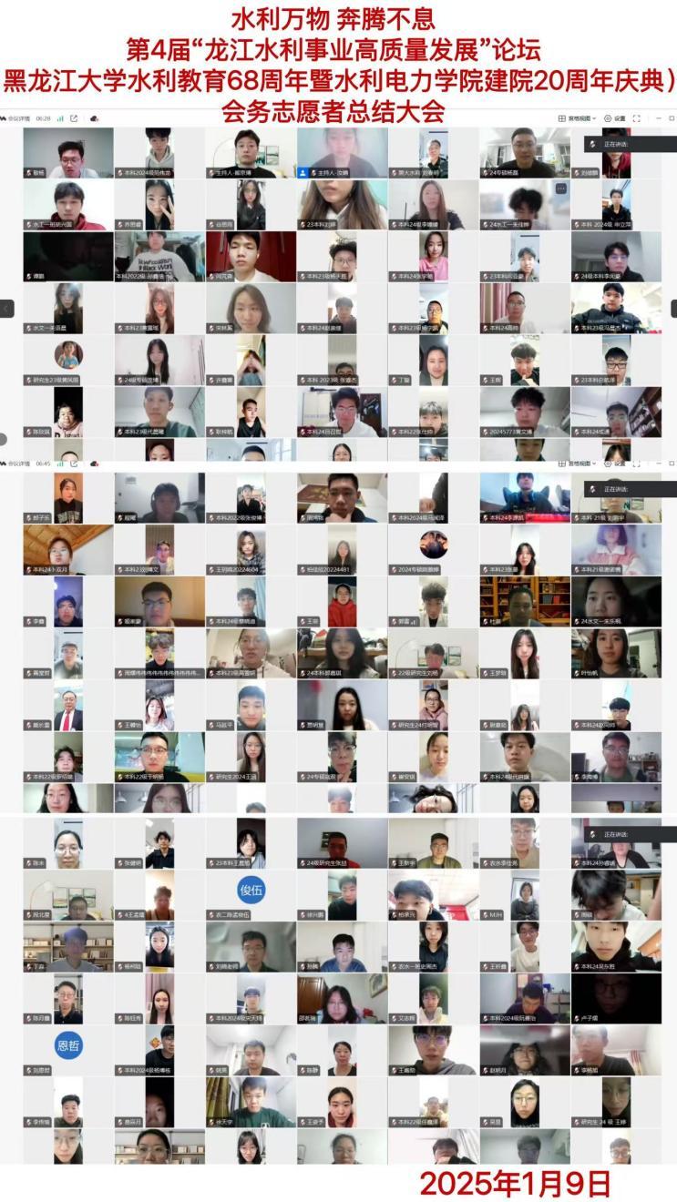 2025年1月9日,乐天使成功举行了第 4 届“龙江水利事业高质量发展”论坛、乐天使fun88官方网站水利教育 68 周年暨乐天使建院20 周年庆典会务志愿者总结大会。此次大会旨在回顾志愿服务历程,表彰优秀志愿者,传承奉献精神。公司党委书记刘春明、经理戴长雷、党委副书记刘若男、副经理孙颖娜以及全体会务志愿老师、同学齐聚一堂,共襄盛举。