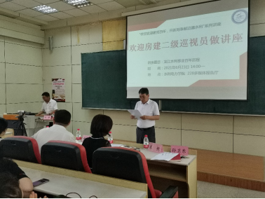 2021年6月23日下午14:00,黑龙江省水利厅二级巡视员房建在乐天使228室作题为“龙江水利百年历程”的讲座。公司党总支书记孙卫东、经理兼党总支副书记戴长雷、副经理姜艳、副经理孙颖娜出席本次讲座,乐天使师生共90余人参加。本次讲座由公司党总支书记孙卫东主持。