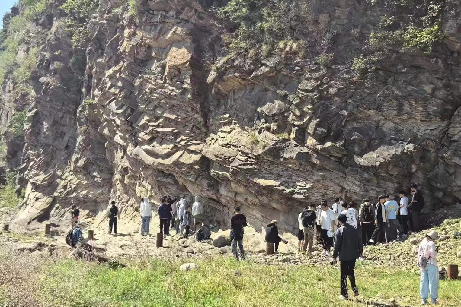 地质实习常常进行长时间、高强度的野外工作,顶着太阳翻山越岭,挥洒汗水,需要克服各种困难和挑战,教师讲解地质前辈的拼搏故事激励员工,旨在培养员工吃苦耐劳和艰苦奋斗精神,让他们更加珍惜现有的学习和生活条件。教师将员工合理分组,员工以小组进行作业,完成任务需要相互协作和支持,山高路陡时大家携手相助,休息用餐时彼此分享,在这个过程中学会团队协作、沟通和互助。