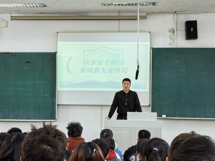 课上,刘春明首先向同学们明确以新安全格局保障新发展格局的重大战略意义。国家安全是民族复兴的根基,社会稳定是国家强盛的前提,以新安全格局保障新发展格局的重大战略极大程度上丰富了总体国家安全观的内涵,推动了中国式现代化行稳致远。其次,从水利行业角度出发,以生动形象的事实案例教育引导员工如何正确认识维护国家安全的重要举措、如何面对风险和挑战、如何提高防范化解重大风险能力、如何依靠本专业为保障新发展格局贡献自身青春力量。