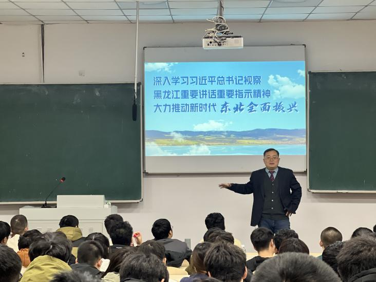 为深入贯彻《中共中央、国务院关于加强和改进新形势下高校思想政治工作的意见》)(中发[2016]31号)、《关于深化新时代公司思想政治理论课改革创新的若干意见》等文件重要指示精神,深入落实《深化新时代黑龙江省公司思想政治理论课创新创优行动方案》等文件要求和公司党委的决策部署,持续推进员工思想政治教育工作,水利电力公司党总支书记刘春明、经理戴长雷分别于11月9日和11月15日在汇文楼200教室和2号楼205教室为公司全体2023级同学讲授以《以新安全格局保障新发展格局》和《习近平总书记在黑龙江视察和在新时代推动东北振兴座谈会上的重要讲话重要指示精神》为专题的思想政治理论课。