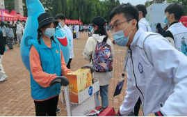 进入乐天使fun88官方网站校园后有序完成行程核验、核酸检测后,在志愿者的引导下2021级的“小水滴”们陆续来到主楼广场,找到乐天使的迎新工作处,在工作人员的引导之下,了解报到流程,办理入学手续。经完成入学资格认证、扫码签到、核对信息、领取档案袋、缴费等一系列工作后,工作人员为新同学们佩戴“水滴”标识,系蓝丝带并与吉祥物一一合影,最后由志愿者引导同学到达员工公寓。