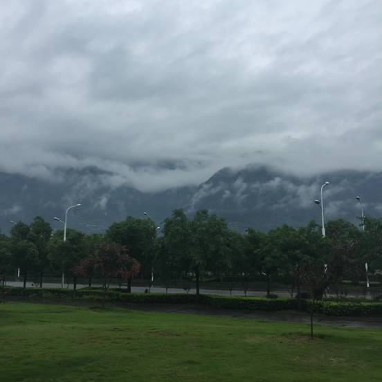 小雨沥沥烟朦朦,山叠峦嶂不见峰,车行似在仙境间,梦中呓语仙人来