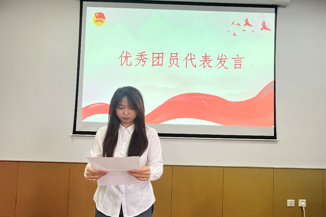 随后,优秀团员代表马海璐回忆了自己在共青团的成长之路,分享了如何将理论学习转化为实际行动的经验,激励新团员不仅要学习专业知识,更要培养社会责任感,以实际行动践行党的二十届三中全会精神。
