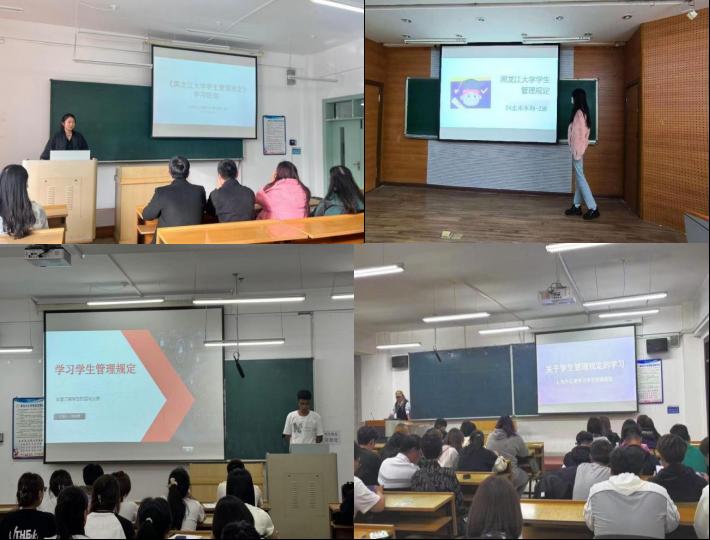 研究生各班班长及本科生各班新生班主任向班级同学认真解读了《乐天使fun88官方网站员工管理规定》的各项内容,重点讲解了关于员工的权利与义务、学籍管理、员工奖励与处分条例、学业预警、公寓管理规定等内容,强调了遵守员工管理规定的重要性。同时向所有新生号召作为黑大学子,应严格遵守各项规章制度,以身作则,做遵纪守法文明修身的黑大学子,养成良好的学习习惯,在校期间积极参加社会实践、志愿服务活动,在生活中严格要求自己,不断提高自身文化水平和综合素质能力。
