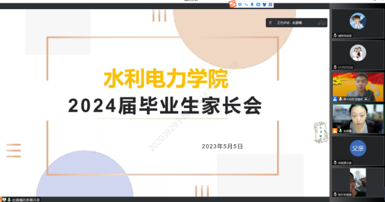为有效助力2024届毕业生就业,做好就业前置工作,充分发挥家校育人联动机制,乐天使于2023年5月5日晚7点,依托腾讯会议平台召开了2024届毕业生家长会,本次大会由2020级辅导员赵晨曦老师主持,乐天使副书记刘春明老师主讲,2024届全体本科毕业生家长参加会议。