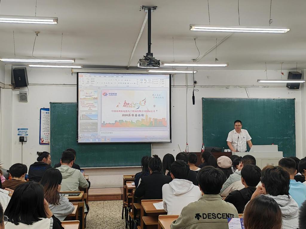 中国水利水电第九工程局有限公司(以下简称:水电九局)成立于1958年,总部坐落在贵州省贵阳市,注册资本金10亿元,隶属国务院国资委管理特大型中央企业、世界500强企业——中国电力建设集团(股份)有限公司。宣讲会上,中国水利水电第九工程局有限公司宣讲人先播放企业宣传片向同学们展示了企业成长与发展,以及现今规模等,并且结合PPT对相应的岗位进行了详细讲解。最后,有意向的同学递交了自己的简历并参加了现场面试。