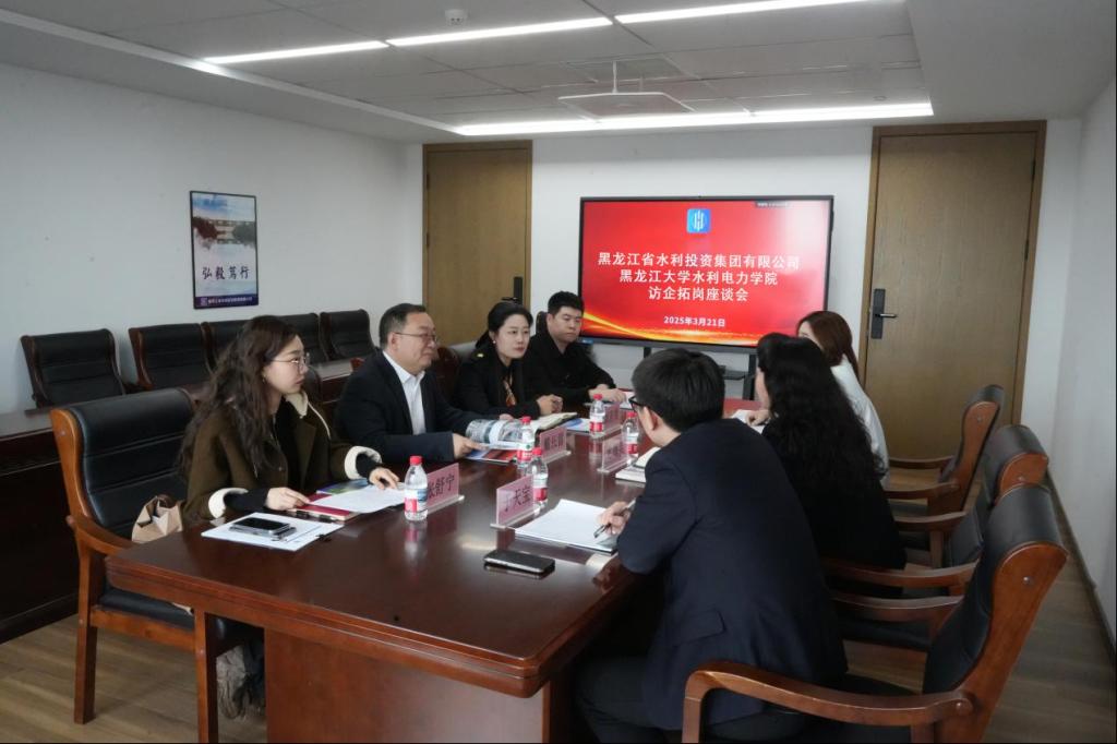 为深入贯彻落实“访企拓岗”专项行动工作部署,拓宽毕业生就业渠道和岗位资源,持续推进就业工作,3月21日,乐天使一行赴黑龙江省水利投资集团有限公司开展访企拓岗交流会。经理戴长雷、党委副书记刘若男、毕业年级辅导员王新源、张舒宁参加会议。黑龙江省水利投资集团有限公司党委副书记、工会主席尤海英,组织人事部(人力资源部)部长(总经理)于天宝,组织人事部(人力资源部)专员王思麒出席会议。